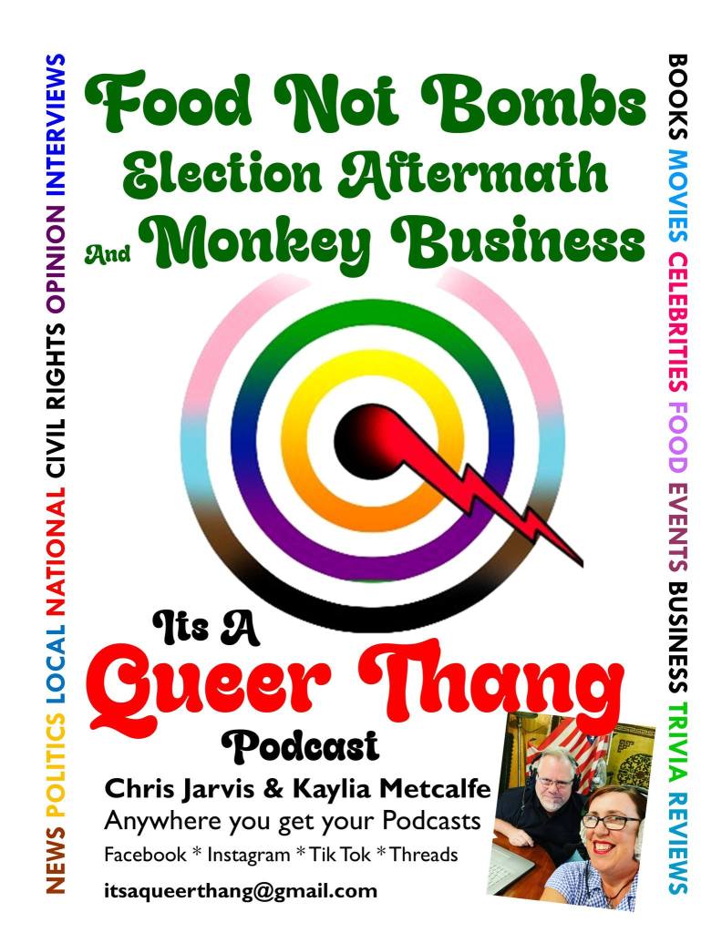 In this episode we talk to J from Food Not Bombs Fresno about collecting and dispersing food to the community in need, dive into a 2024 election aftermath, talk the Onion and Info Wars, The Liberty Council Naughty or Nice list, empowered people in New Zealand, laugh at some strange monkey business, and share about more local LGBTQ nonprofits.