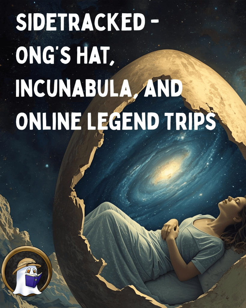 This episode deviates slightly from the stories of ghosts and demons featured in most episodes to discuss one of the internet’s earliest conspiracy theories. This story contains travel to alternate Earths, encounters with paranormal phenomena, mysticism and chaos magic, shadowy government agents bent on stripping humanity of freedom, and lots of drugs and sex. It can also teach us a lot about how paranormal folklore develops and spreads online. Also, it explains how a pulp science fiction writer popular with the hippies is connected to Reaganomics and Q-Anon. So, listen and learn about Ong’s Hat and the Incunabula.